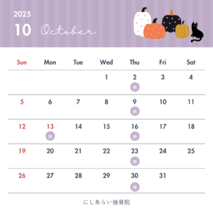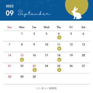 9月10月のお知らせ 2025.09.22 9月10月の祝日は休診とさせていただきます。 診療はご予約制となりますので前日までのご予約はLINEからが便利ですのでぜひご利用ください。当日の場合はお電話で承ります^ ^ Post Share Hatena Pocket RSS feedly Pin it 5月の診療予定 前の記事 1/12月祝 次の記事